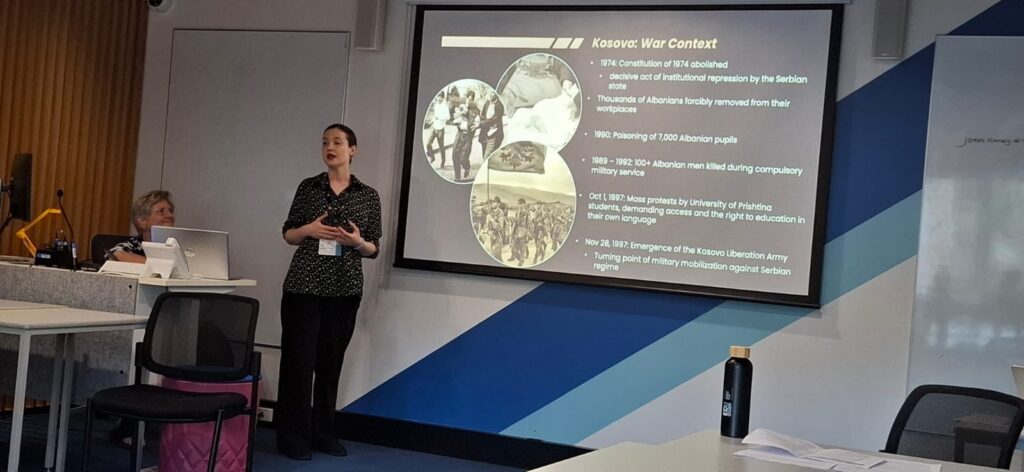 IKKL u përfaqësua nga z. Hetemi dhe znj. Avdyli në konferencën shkencore International Research Society for Public Management (IRSPM), e organizuar nga Edith Cowan University në Perth të Australisë. Kjo konferencë prestigjioze mblodhi mbi 360 studiues dhe akademikë nga mbarë bota. Në këtë ngjarje të rëndësishme, IKKL shpjegoi kontekstin e luftës në Kosovë, si dhe punën e saj hulumtuese, përmes një prezantimi të përbashkët me Prof. Catherine Althaus, Prof. Gerda van Dijk dhe znj. Mareli Colpi, duke theksuar rëndësinë thelbësore të dokumentimit të kujtesës kolektive për arritjen e paqes së qëndrueshme në rajonet e prekura nga luftërat.