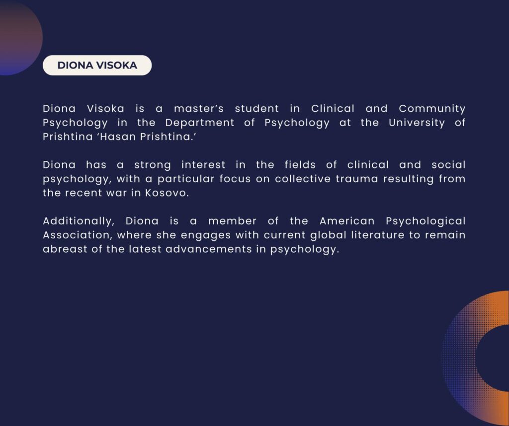 – Interesat e saj fokusohen në psikologjinë klinike dhe sociale, me theks të veçantë në traumën kolektive si pasojë e luftës së fundit në Kosovë.