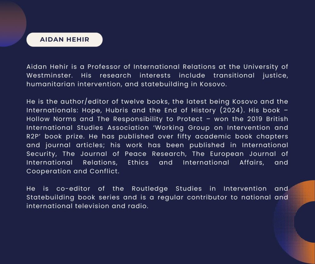 – Interesat e tij përfshijnë drejtësinë tranzicionale, ndërhyrjen humanitare dhe ndërtimin e shtetit, me fokus të veçantë në Kosovë.