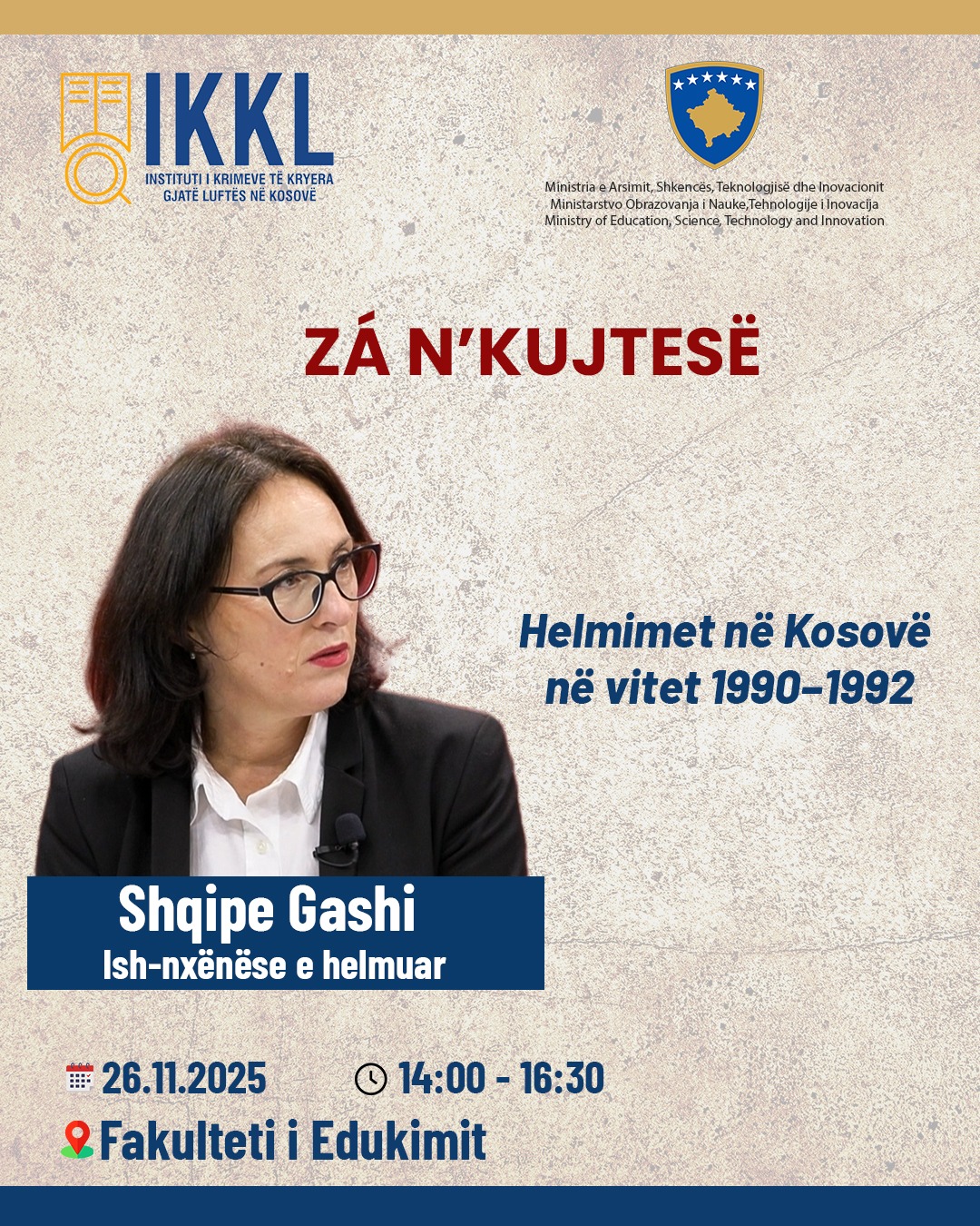 Ky edicion i ri i ZÁ N’KUJTESË, i realizuar nga IKKL në bashkëpunim me MAShTI-n, do të paraqesë dokumente, fotografi dhe dëshmi të kohës që ndriçojnë një nga episodet më të errëta të viteve të 90-ta. Një hapësirë kujtese, reflektimi dhe thirrje për drejtësi.