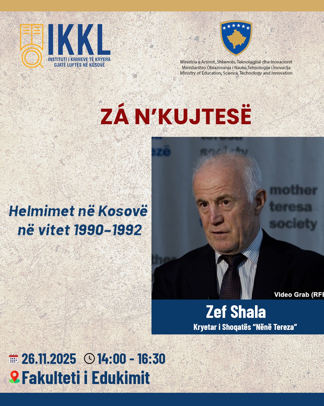 Zef Shala, ndër themeluesit e shoqatës “Nëna Terezë”, që e udhëheq edhe sot, i bashkohet panelit me përvojën dhe dëshminë e tij nga vitet e 90-ta. Ai ka kontribuar ndjeshëm në fushën e shëndetësisë, duke ndihmuar komunitetin edhe gjatë kohës së luftës. Materialet e tij arkivore dokumentojnë në mënyrë të detajuar dhunën sistematike të ushtruar nga regjimi serb në të gjitha sferat e jetës shoqërore në Kosovë që nga viti 1990.